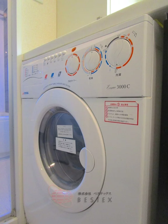 洗面所には乾燥機能付洗濯機が完備☆ 悪天候でも、部屋干しでも重宝します☆