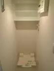 玄関にシューズボックス、ユーティリティスペースに室内洗濯機置場が備わった、