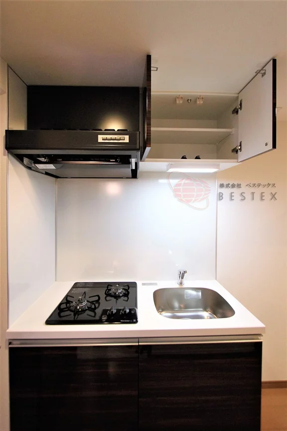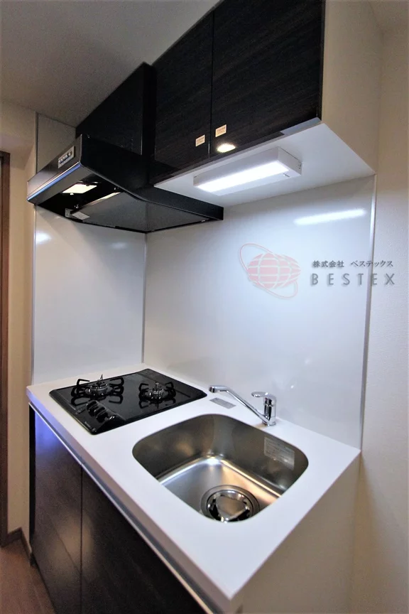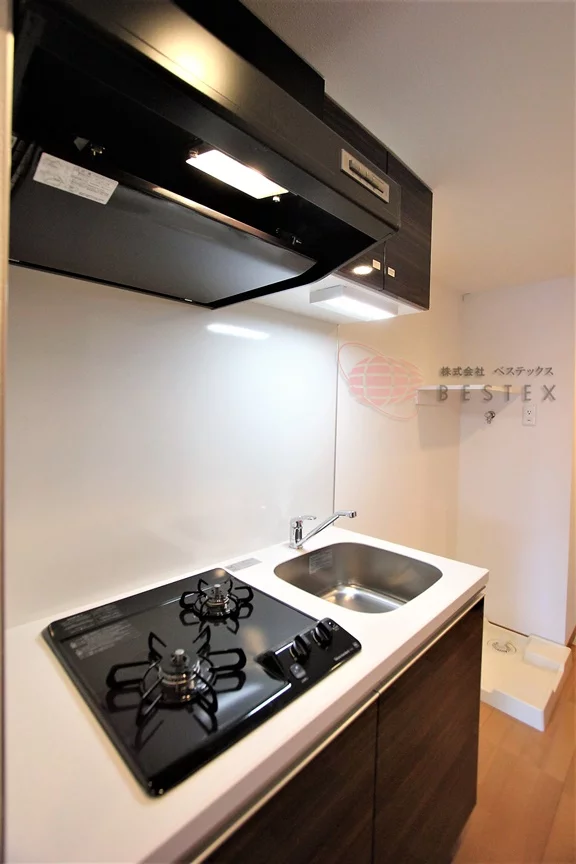 キッチンは2口ガスコンロが完備されたシステムキッチンとなっておりますので、お気軽にお料理をお楽しみいただけます。
