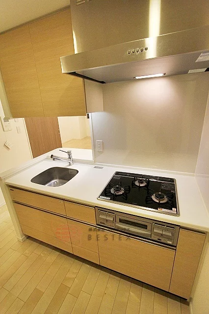 ⓵リビングを見渡せるカウンターキッチン仕様、コンロは3口完備♪