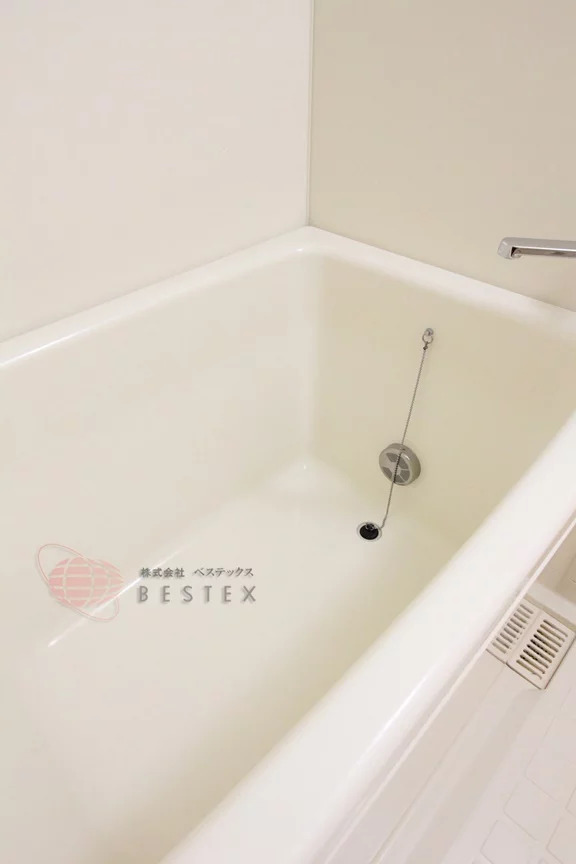 バスルームも浴槽が深く、追い焚き機能つき!