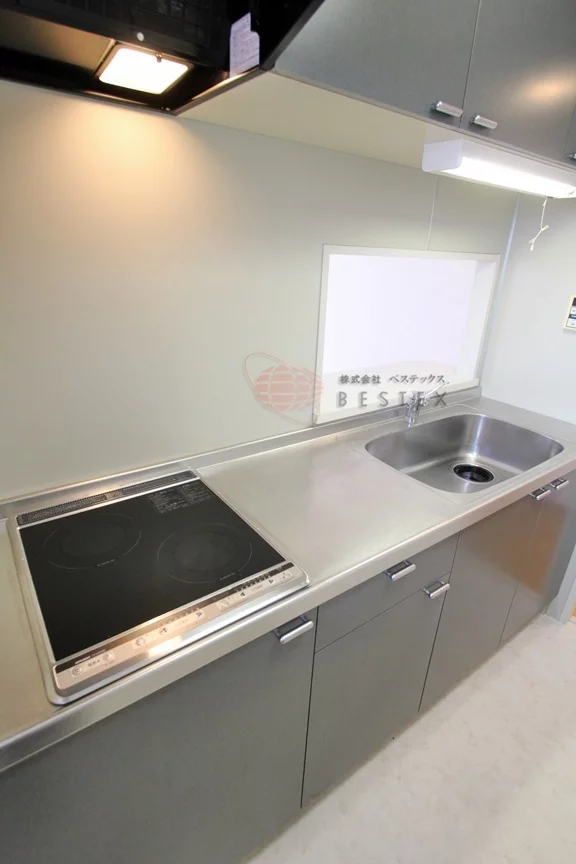 キッチンは2口コンロのIHシステムキッチンが完備!拭くだけで簡単にお手入れが可能です!