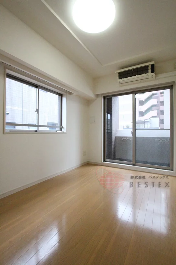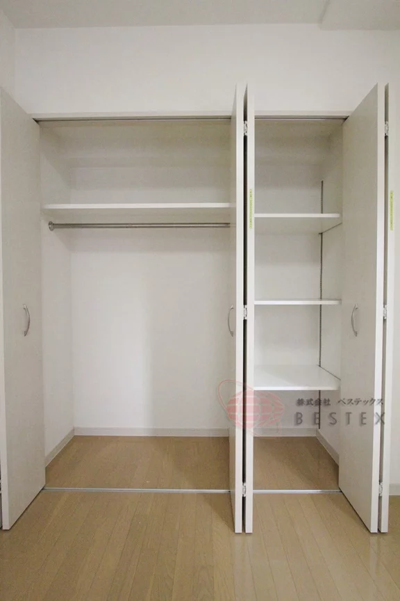 2面採光の角部屋で、居室はデッドスペースが少ない理想的な間取り☆クローゼットも梁のような役割にはなっていないため、家具の配置もしやすく、ベッド、テレビ台、机等、何通りも配置が楽しめます!