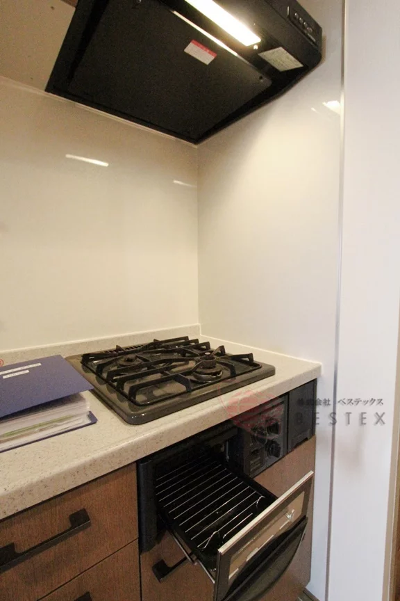 キッチンはガス2口グリル付きのシステムキッチンでお料理もはかどります♪