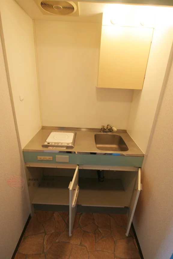 ①.キッチンにはコンロ1口を設置済み、お手入れの簡単なIHクッキングヒーターを採用しています♪