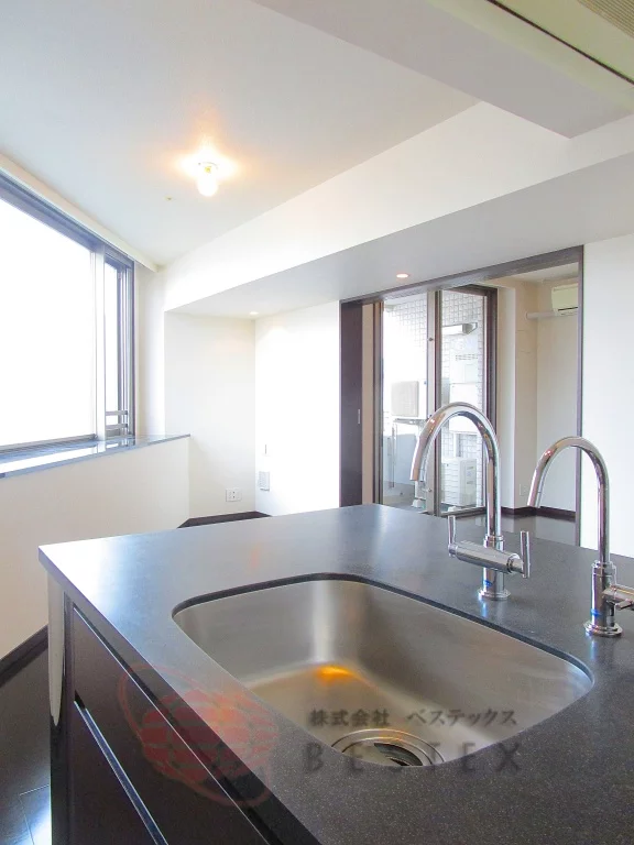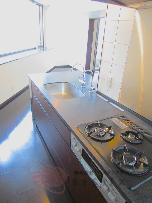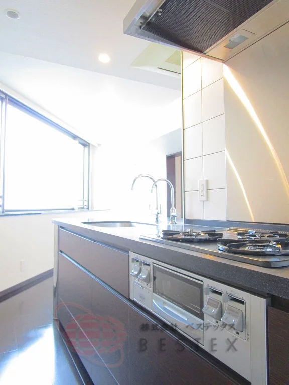 キッチンは3口ガスシステムキッチンでグリルも完備、浄水器も備わっております!