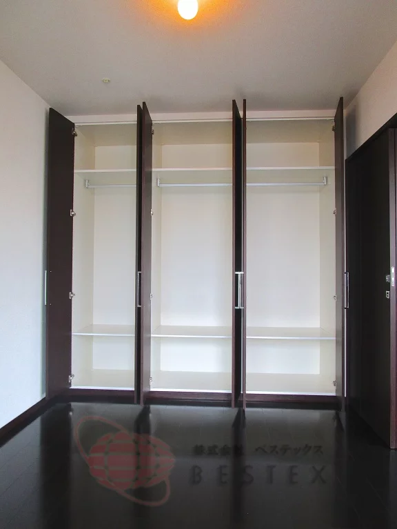 壁一面に大容量のクローゼットを備え、衣類や家具家電などの収納に便利で、お部屋を大きく使うことができます。