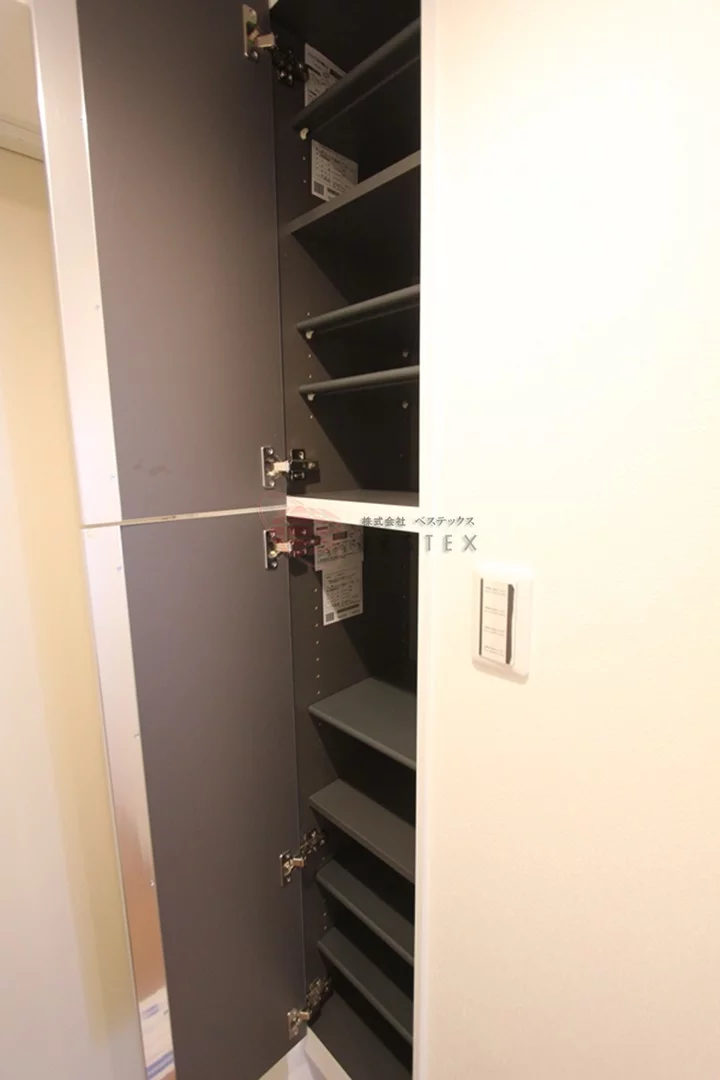 建物は鉄筋コンクリート造3階建てで、落ち着いた住宅街に馴染むスタイリッシュな外観が印象的。エントランスにはオートロックに加え、モニター付きインターホンを完備しており、来訪者の確認ができる安心のセキュリティ体制となっています。またメールボックスも設置されており、日常の使い勝手にも配慮されています。