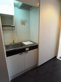⓵キッチンには1口コンロ設置済み、お手入れの簡単なIHクッキングヒーターを採用!