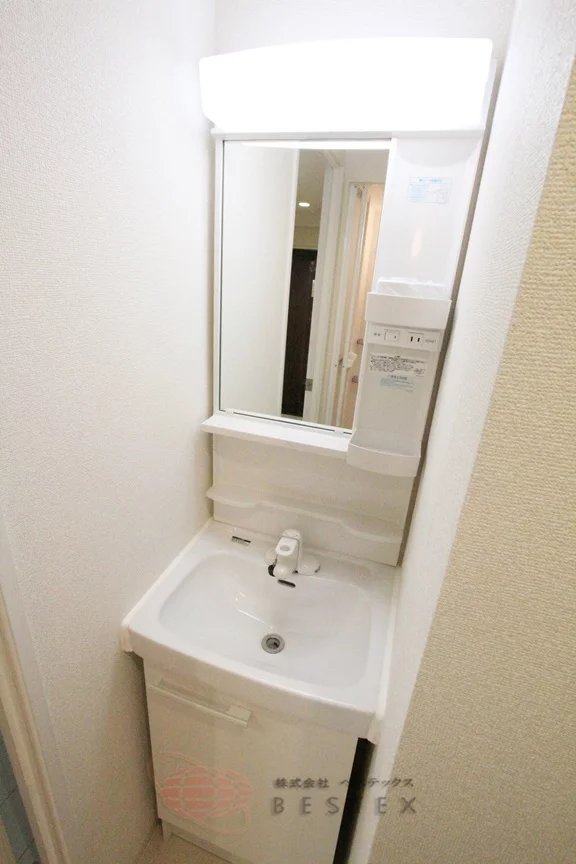 洋室は少々広めの6.7帖。少し大きめのクローゼットがあります。バス・トイレ別で独立洗面台もあります。