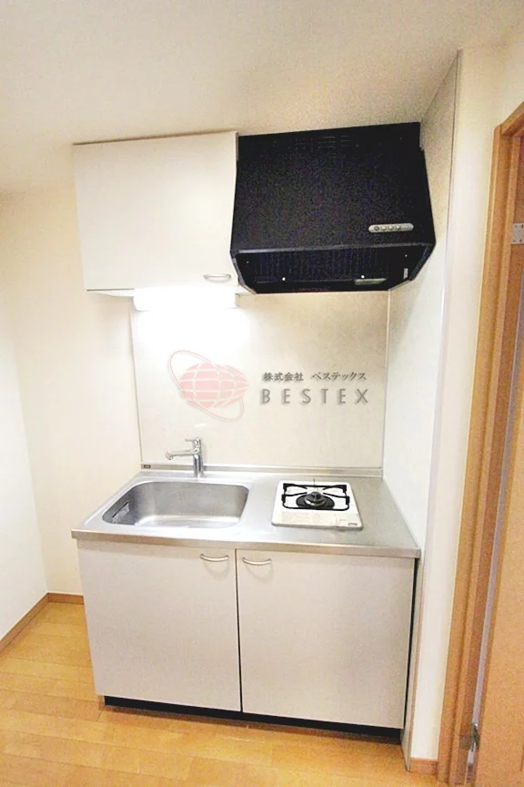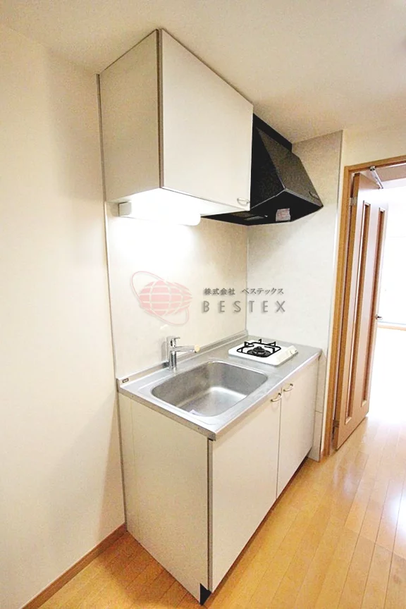 お部屋はシンプルな8帖!家具の配置も考えやすいです。玄関からバルコニーへは一直線の縦長のような造りになっています。玄関には質愛洗濯機置き場もございます。帰ってきてすぐに衣類もポイ!汚れた衣類をお部屋へ持ち込みたくない人にはぴったりの配置です。キッチンはシンプルな1口コンロで、並びには冷蔵庫も置けます。
