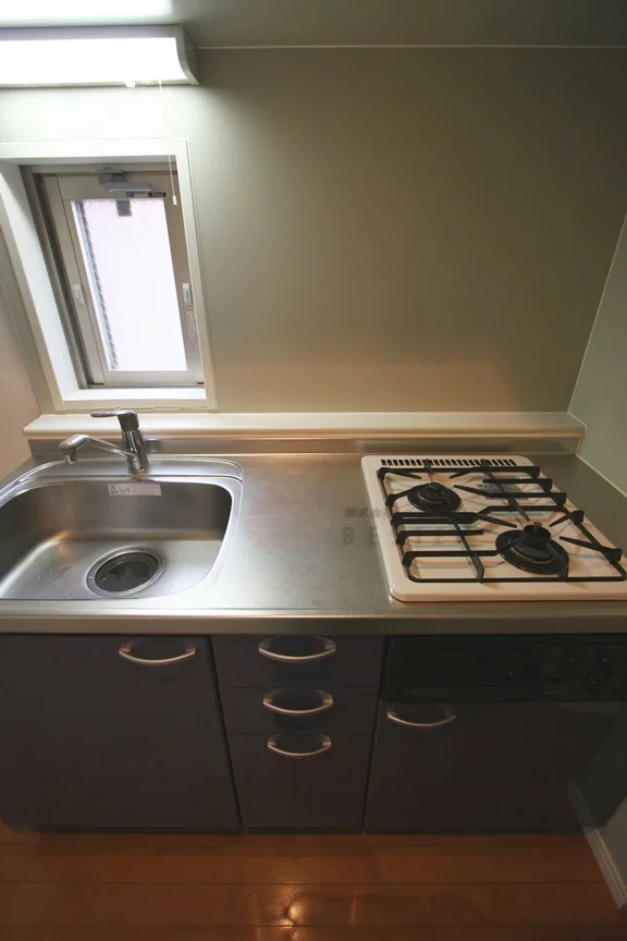 キッチンは2口ガスシステムキッチン♪グリルも付いております。