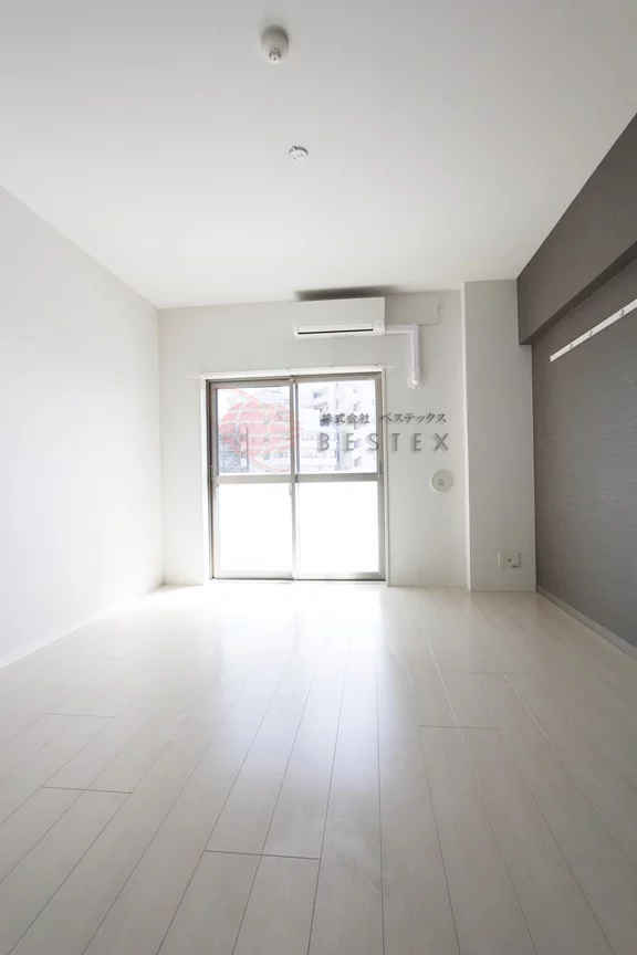 居室は約8.3帖の広さがあり、無駄な梁や柱のないシンプルな間取りはベッドやテレビ、テーブルなどの家具配置も自由自在!