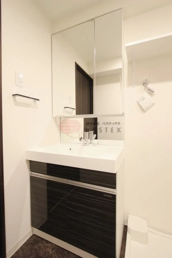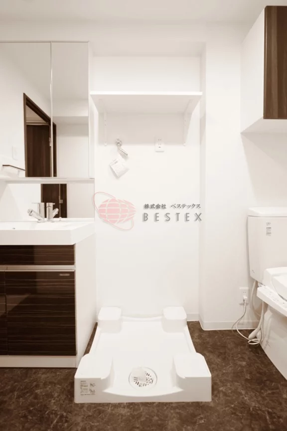 パウダールームには人気の独立洗面台、室内洗濯機置場、トイレが設置されています。