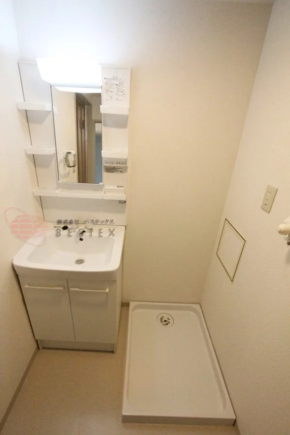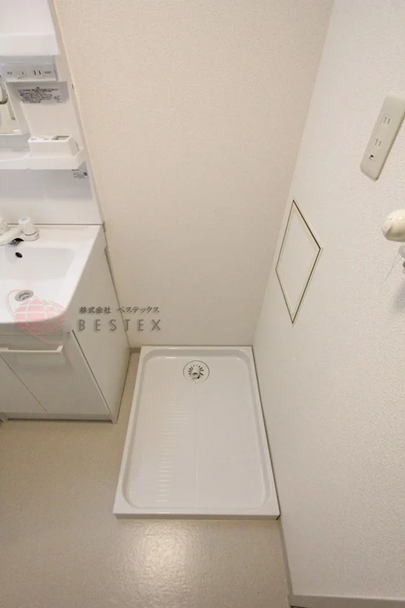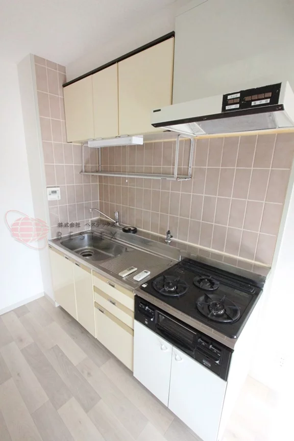 ガス2口キッチン、室内洗濯機置場、バス・トイレ別、独立洗面台。