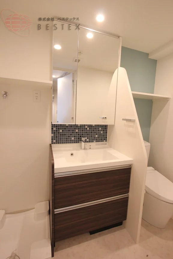 ①.洗面所には人気の設備の独立洗面台やウォシュレット機能付きのトイレなども完備しており、脱衣所としてもご利用可能です!