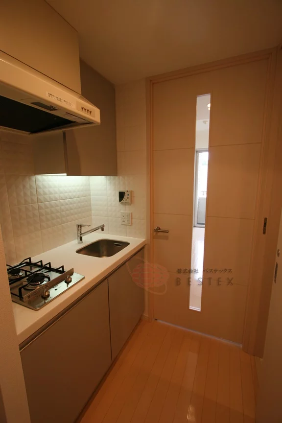 キッチンは2口ガスシステムキッチンで、縦に並んだスタイリッシュなタイプとなっております。