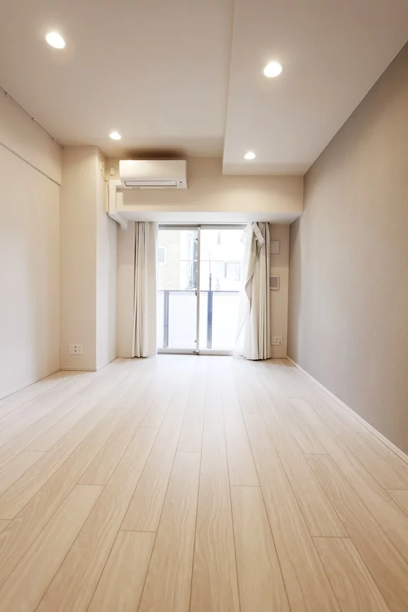 居室約7.8帖と単身向けのお部屋では広いサイズで縦横に広くお部屋のレイアウトがしやすい形となっております。エアコンも完備しているので季節問わず快適な生活を送ることができます。また、バルコニーも広く開放感がございます。バルコニーでの物干しも可能となっております。