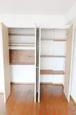 洋室は16.7帖と広く、お部屋のレイアウトの幅も広がります。そのまま広々としたワンルームとして使うもよし、パーテーションなどで仕切って部屋を作るのもよいでしょう。好みに合わせて部屋を作れるのが、広々ワンルームの特徴ですね。洋室のキッチン裏の部分には、クローゼットも2つ設置されています。