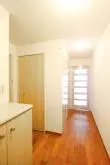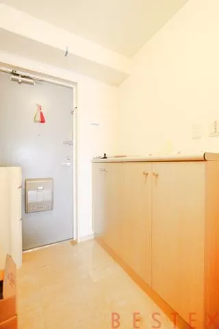 高級タワーマンションということもあり、お部屋は1Rタイプながらも設備は充実。玄関からゆとりがあり、そのまま靴を置いても問題ない広さです。また玄関にはカウンタータイプのシューズボックスがあるので収納にも戸ありません。玄関を上がってすぐのホールにも、クローゼットタイプの収納があります。