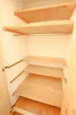 ホールの左手には洗濯機置き場があり、右には洗面所があります。洗濯機置き場は個室タイプ。突っ張り棒などを使えば、洗濯機の上部に収納部を作ることができます。また扉付きなので、来客の際には洗濯機や洗濯物を隠しておけるのがいいですね。洗濯機置き場の隣は、大きなクローゼット。高さも奥行きもあるので、使い勝手がよさそうです。