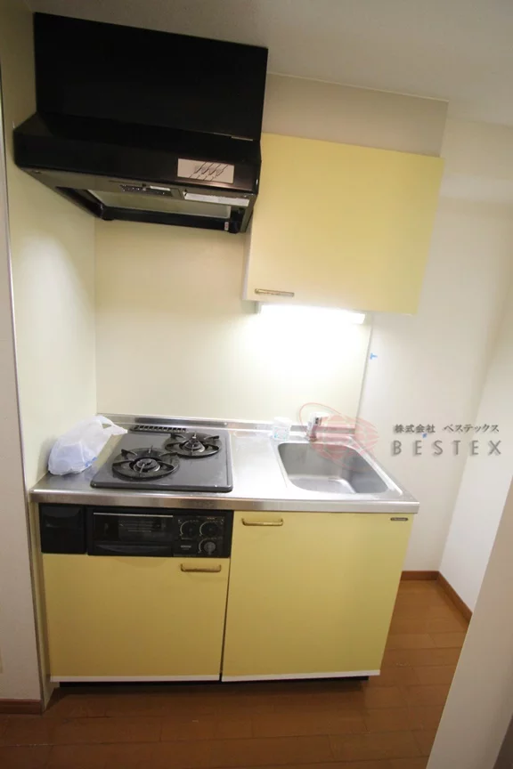 ②.キッチンはガス2口コンロ設置済み、自炊をする方は必見です!