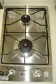 ホールの突き当りは、9.4帖の洋室。ワンルームのため、ここにキッチンが設置されています。キッチンは2口ガスコンロで、水周りも調理スペースも広々。お部屋の雰囲気に合わせたデザインで、白ベースに戸棚の茶色がアクセントになっています。キッチンの並びには、クローゼット。引き戸タイプで、容量は十分です。キッチンの隣にパイプスペース用の壁があるので、パーテーションなどをうまく配置すればキッチンと居室を分けることができます。