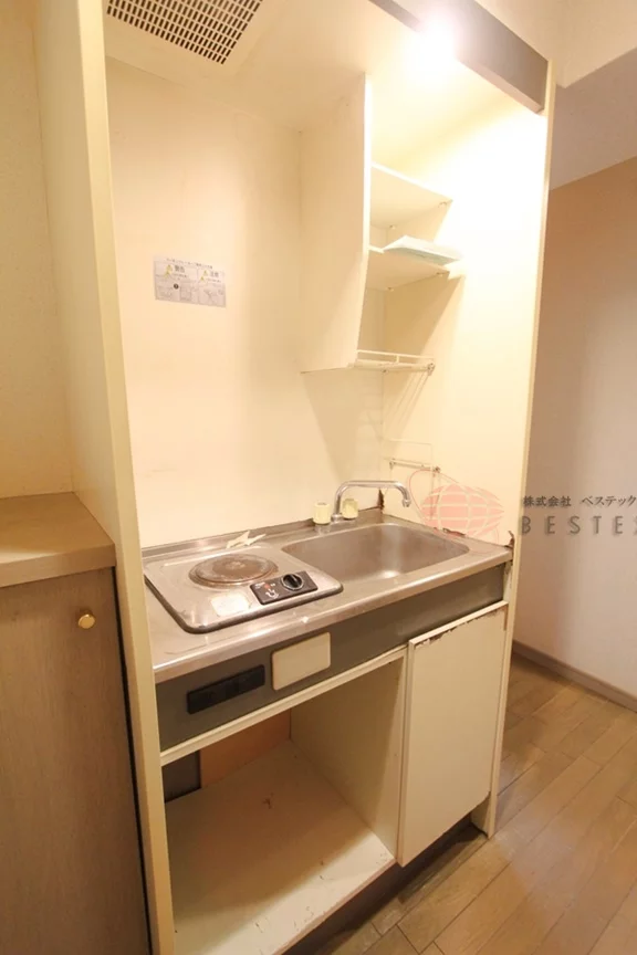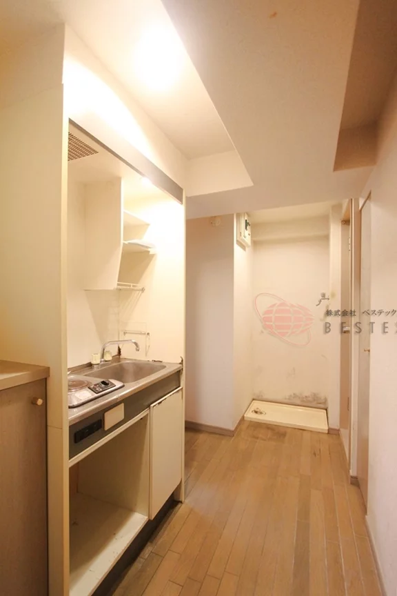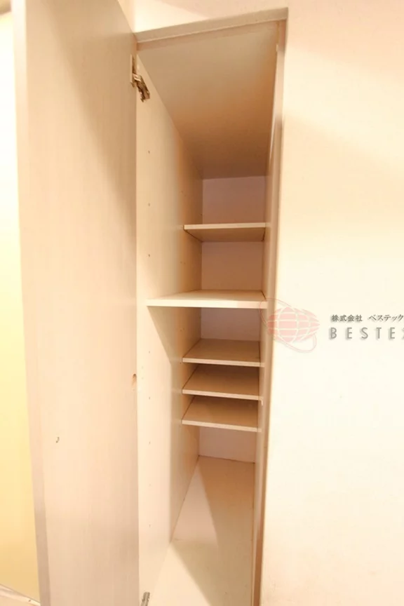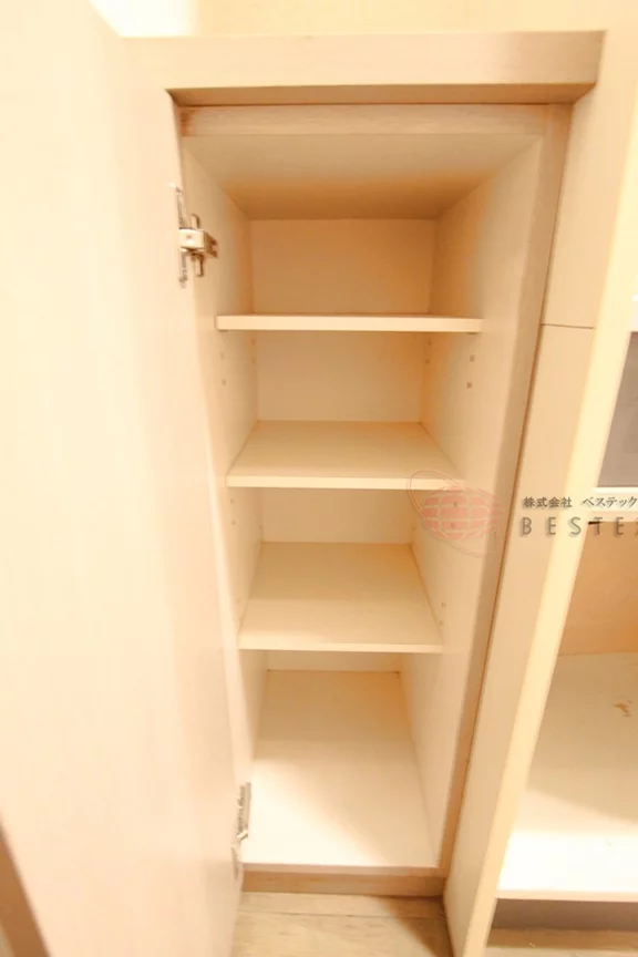 大きめのクローゼットは、キッチン部分に完備しておりますので、居室の広さを邪魔しない配置で無駄なく収納可能♪