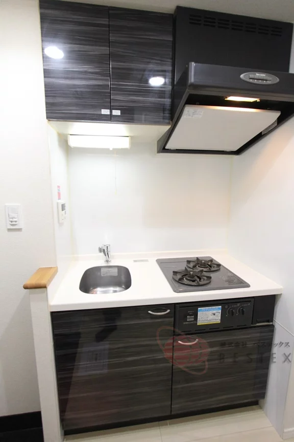 使いやすい2口ガスコンロのキッチン!自炊するのには十分な設備です。シンクはシンプルながら洗い物がしやすい広さもあります。調理スペースも用意されていますので、まな板を置く場所に困ることがございません。買い物便利な立地というのもあり、食事には困りません。
