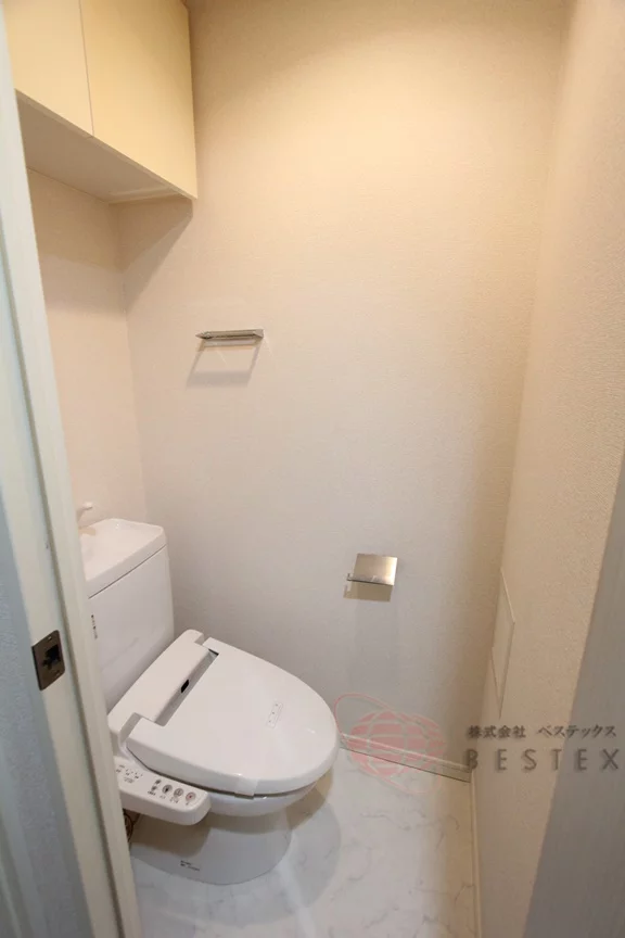 トイレとバスはもちろん別!トイレはウォシュレット機能付きですので、ご安心ください。収納スペースもしっかり確保されております。トイレットペーパーが見えるとどうしても生活感が出てしまうので隠せるのはメリットですね。