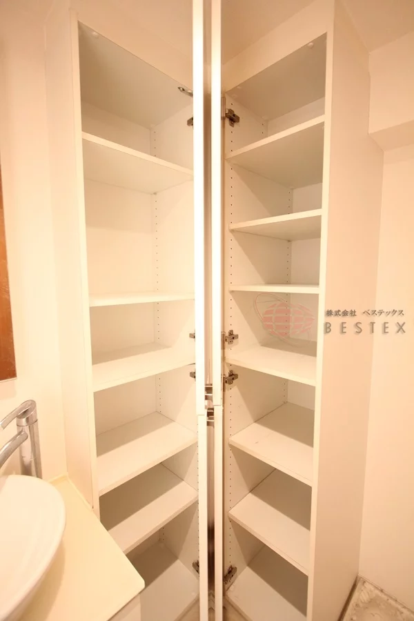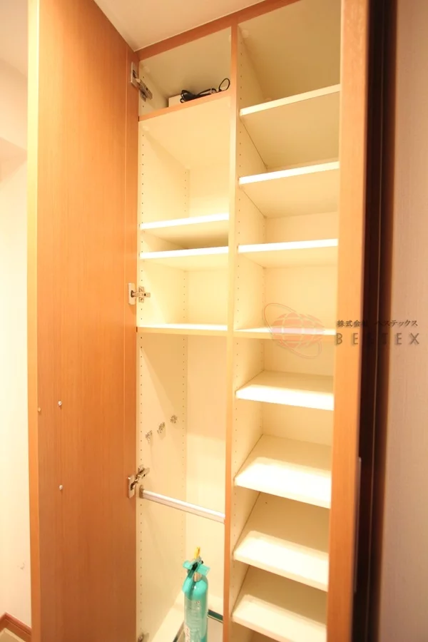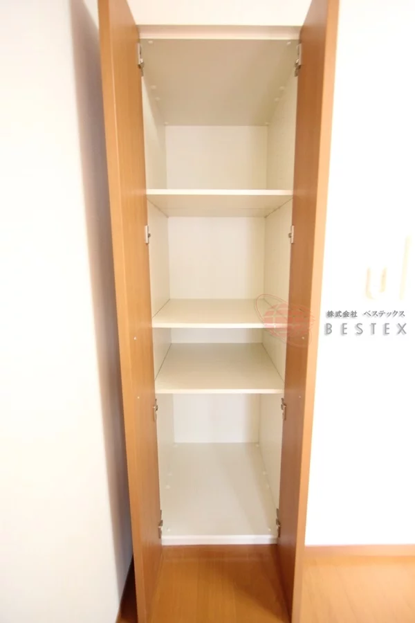 クローゼットは横に広めのもので、別途物入れも付いております。