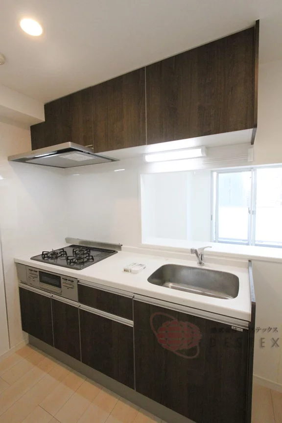 ③3口ガスコンロ+グリル付きのシステムキッチンとキッチンも充実!