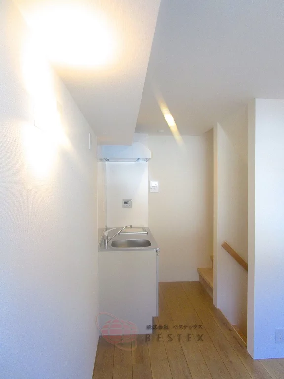 ◎ 1階は3.1帖のガレージ(バイク置場など、使い方は自由!)と鏡付き洗面台、そして、
