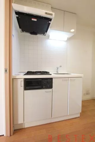 キッチンには、2口ガスコンロ完備のシステムキッチンがあり、お料理も快適に行えます♪キッチン自体にも収納スペースが設けられているので使いやすい仕様になっています。
