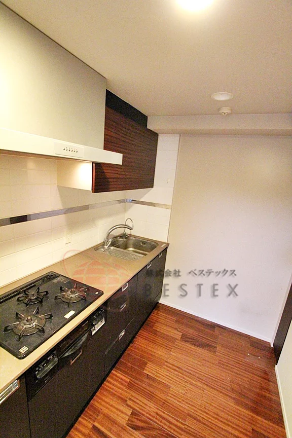 半独立タイプのキッチンはガス3口コンロ・グリル完備のガスシステムキッチン♪