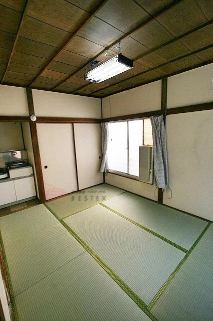 ガスキッチン、エアコン、押入れ完備。