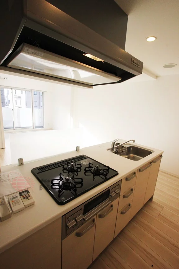 ①.3口ガスコンロのシステムキッチンでカウンター付き♪