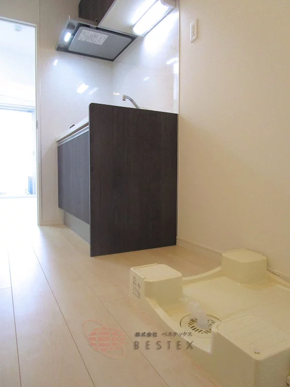 キッチンの収納スペースも十分!冷蔵庫と洗濯機置き場もあります。