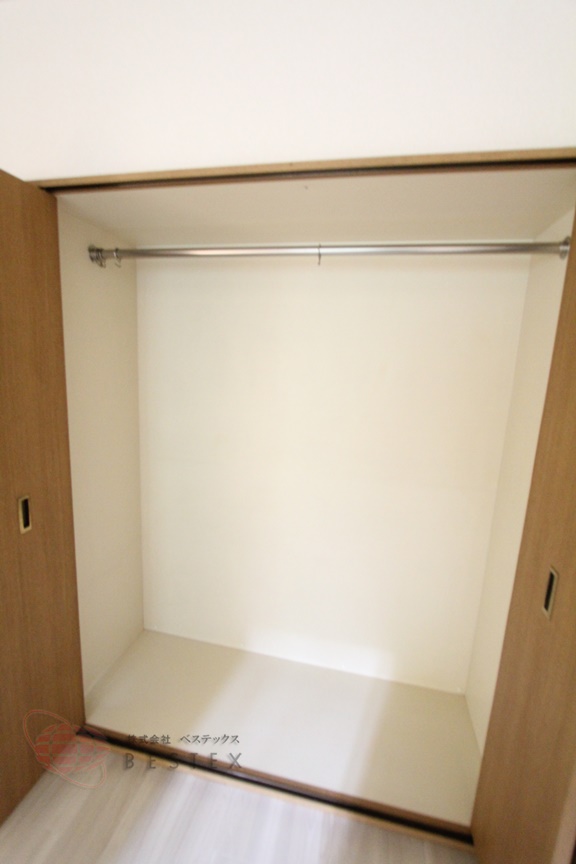 衣服類を掛ける専用の収納、お隣には小物類を置ける収納となっております!