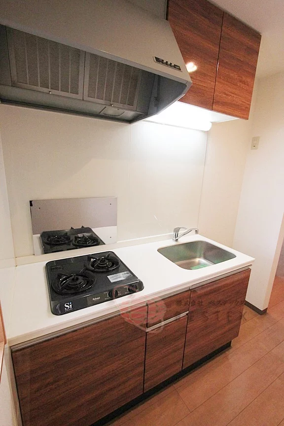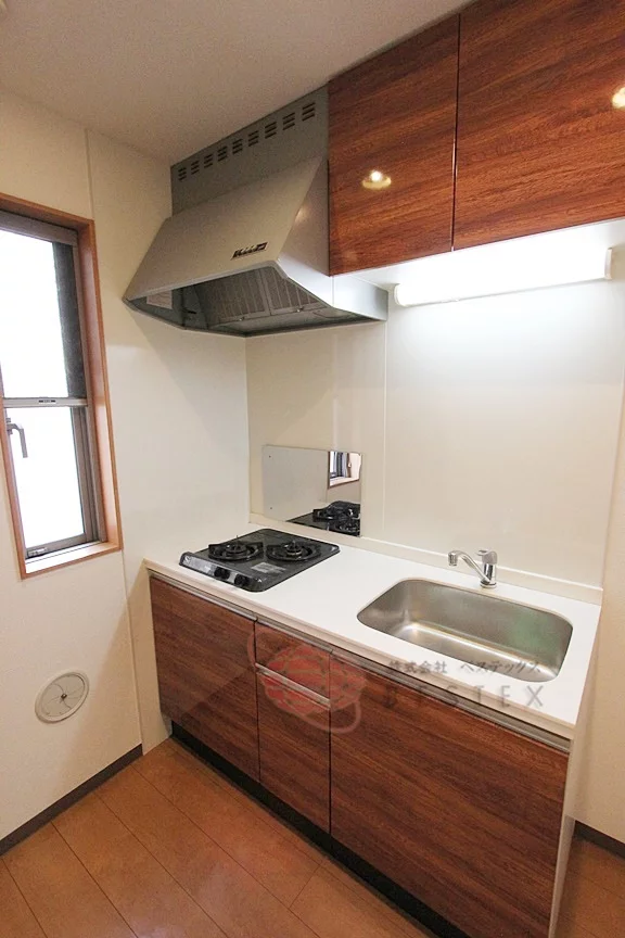 ③.独立洗面台、2口ガスコンロのシステムキッチン、浴室乾燥・浴室暖房付きと設備も充実です!