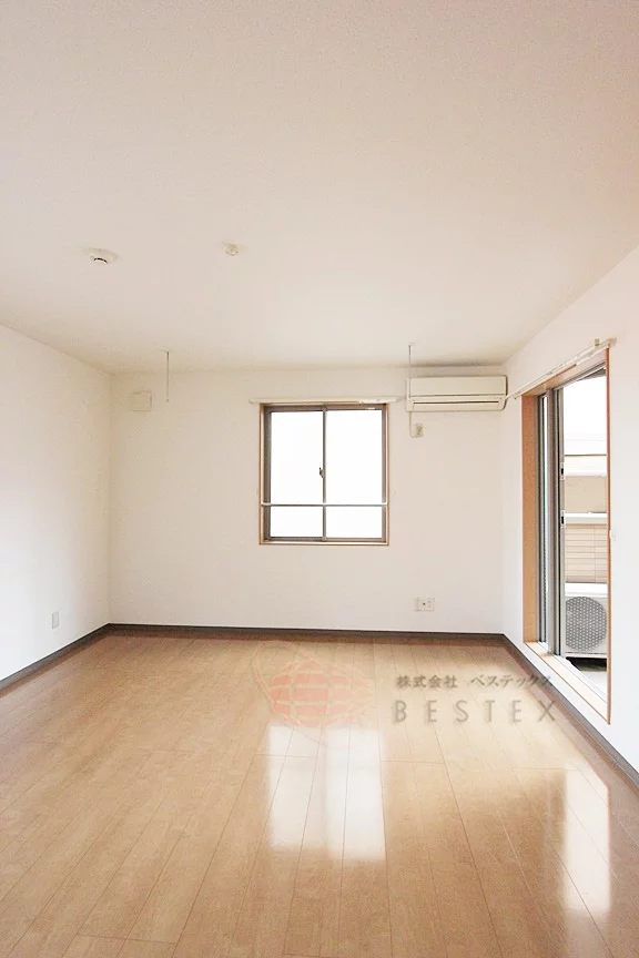 ①.居室部分は7.5帖です!大きな梁や柱もないので家具の配置もしやすい間取り☆