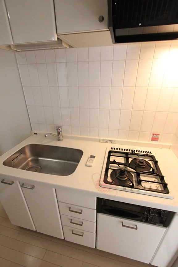 キッチンはガス2口コンロのシステムキッチン!収納スペースも豊富で、日頃のお料理も捗ります♪