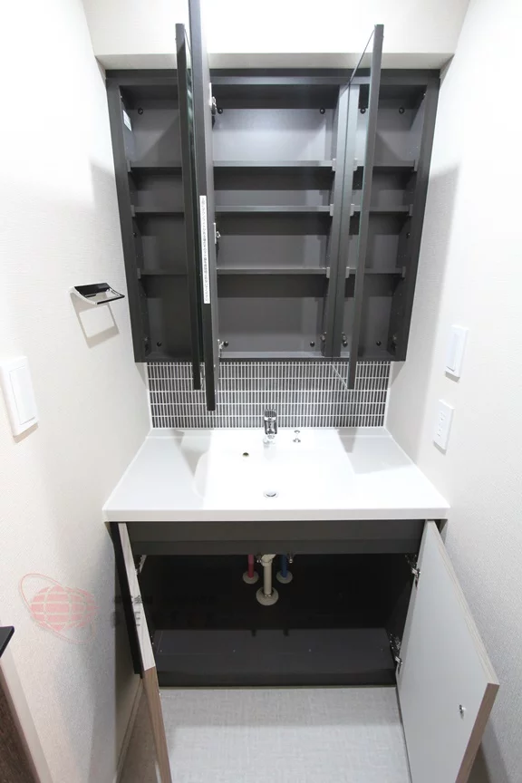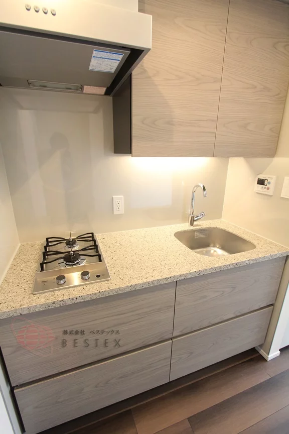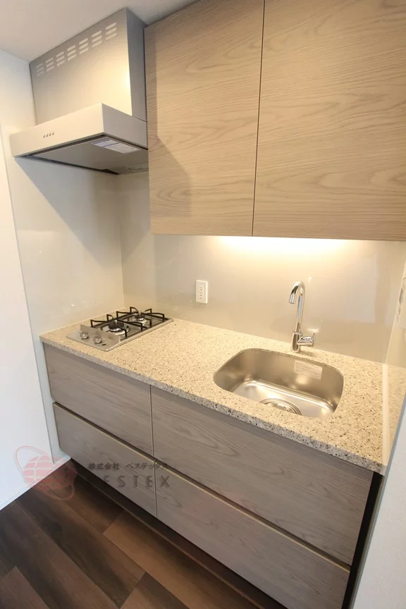 ③.設備面では、独立洗面台や2口ガスコンロのシステムキッチン、