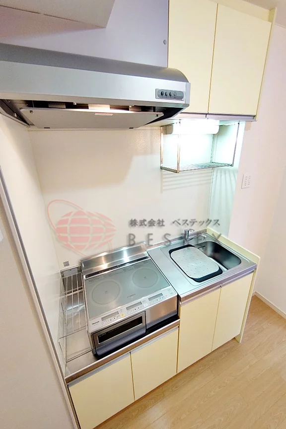 キッチンスペースには独立洗面台や洗濯機置場完備。