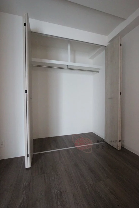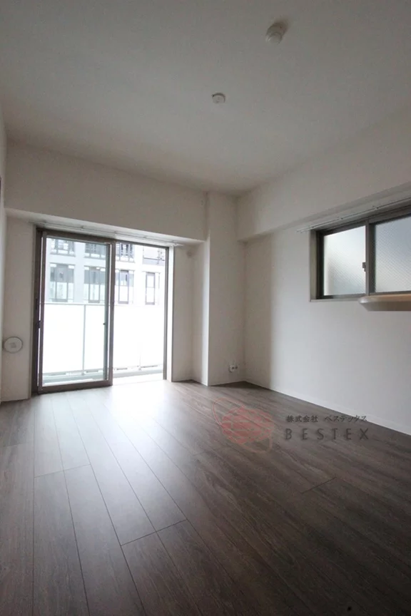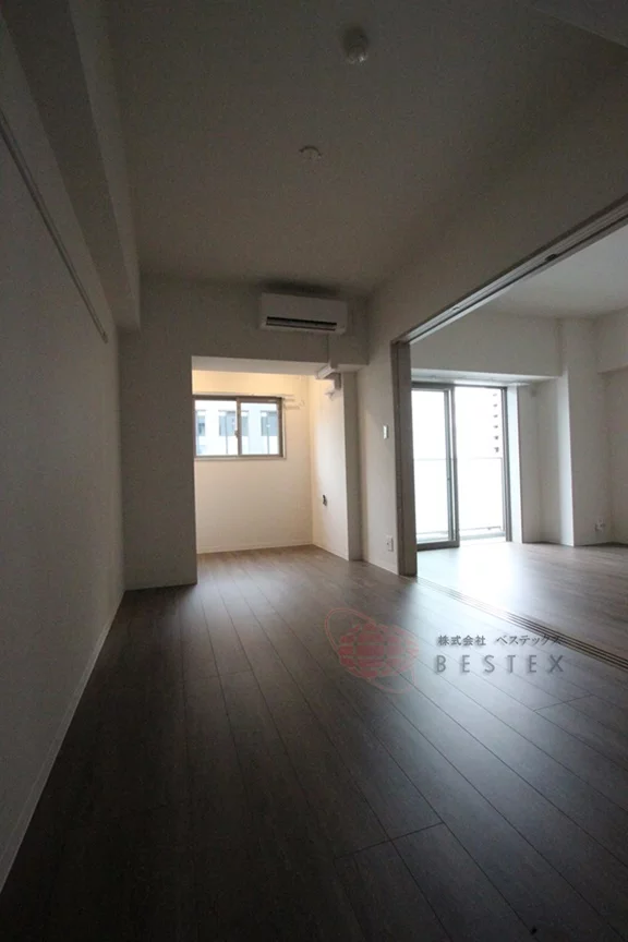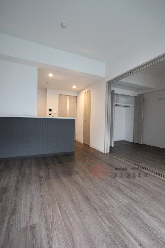 高層階、南向きのお部屋で眺望良好となっております。また、白っぽいフローリングで明るい印象のお部屋となっております。