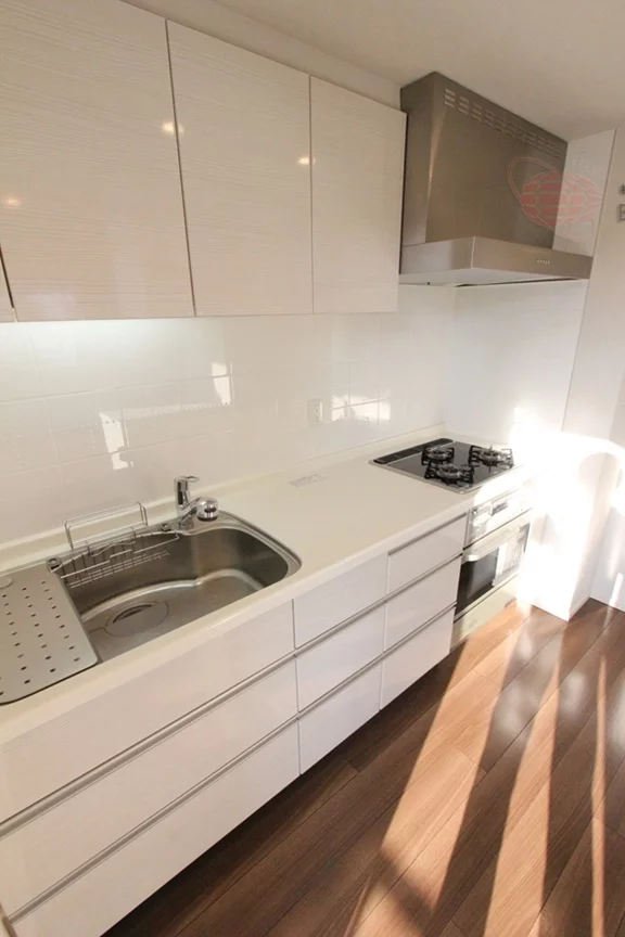 約4.2帖のキッチンは、3口のシステムガスキッチンで申し分なし!収納力も抜群です。