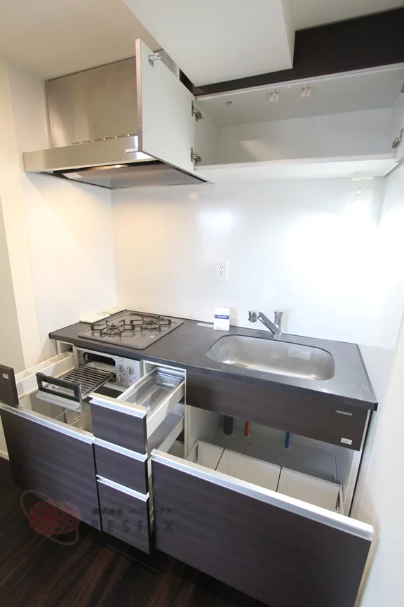 2口コンロが完備されたシステムキッチとなっておりますので、不自由なくお料理をお楽しみ頂けます!