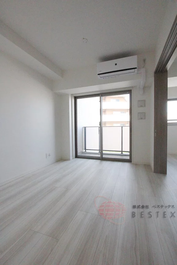 室内は、リビング約7.0帖・居室約6.3帖と使いやすい振り分けタイプとなっております。居室部分の梁が目立ちますが、それでも十分広さを感じられます。また、梁のある部分に収納棚や本棚などを置きデットスペースがゥできないようにうまくレイアウトできれば生活もしやすいかと思います。居室には、ウォークインクローゼットもございます。
