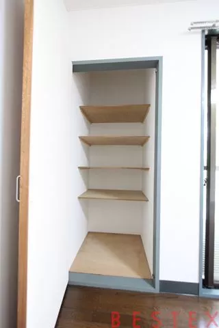 バルコニーにはちょっとした物置も完備。他の物件では中々見ない設備です。