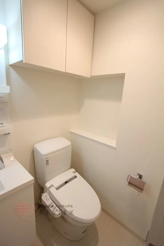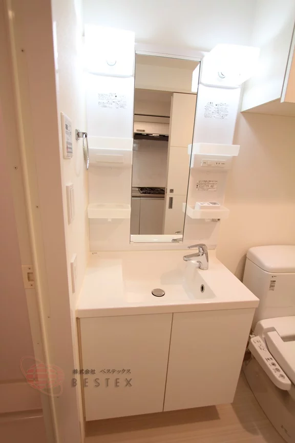洗面台の隣にはウォシュレット機能付きのトイレも!